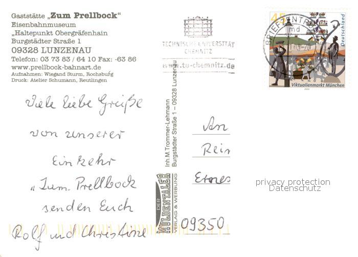 73657665 alte Postkarte Lunzenau Gaststaette Zum Prellbock Biergarten Kneipe Eisenbahnmuseum Bootsfahrt postalisch gelaufen Erhaltung siehe scans [FriedD77] KatCode: 11110014182260