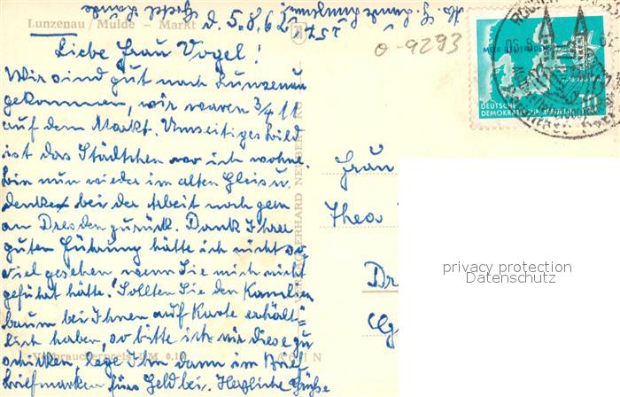 43347303 alte Postkarte Lunzenau Markt Kirche postalisch gelaufen Erhaltung siehe scans [KathaD81] KatCode: 11110014182260