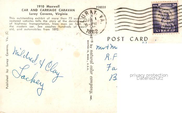73061549 old postcard Luray Virginia 1910 Maxwell Car and Carriage Caravan postalisch gelaufen Erhaltung siehe scans [WerneD78] KatCode: 14140490000000