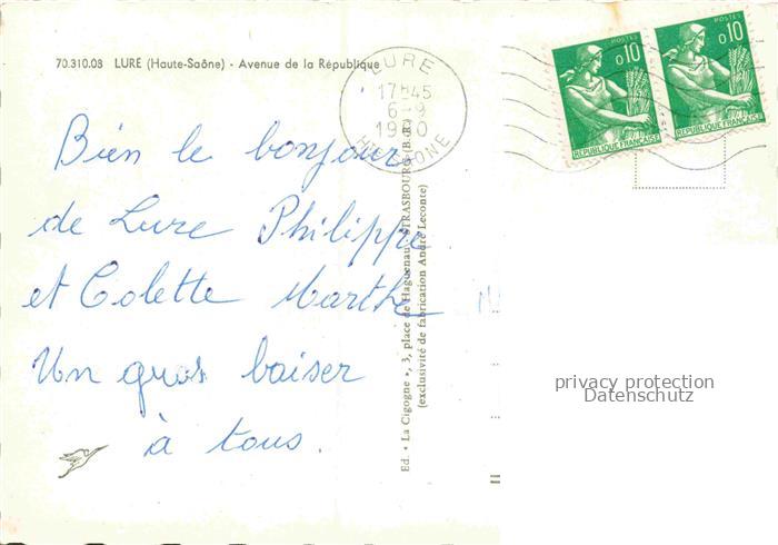 14105115 carte postale Lure 70 Haute-Saone Avenue de la République postalisch gelaufen Erhaltung siehe scans [FriedD77] KatCode: 11170070170310