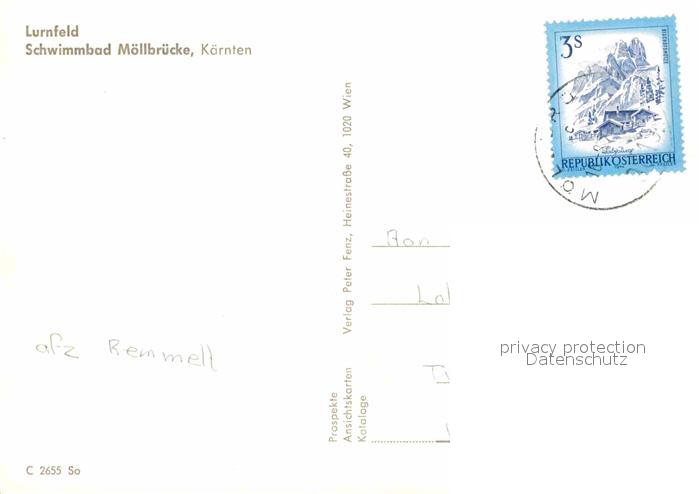 72898049 alte Postkarte Lurnfeld Schwimmbad Moellbruecke postalisch gelaufen Erhaltung siehe scans [FriedD77] KatCode: 11390212020643