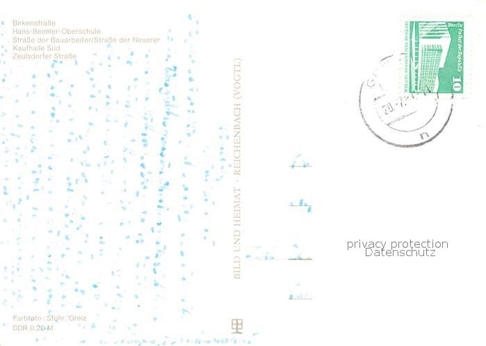 73655149 alte Postkarte Lusan Gera Neubaugebiete Plattenbauten Birkenstrasse Hans Beimler Oberschule Strasse der Bauarbeiter Strasse der Neuerer Kaufhalle Zeulsdorfer Strasse postalisch gelaufen Erhaltung siehe scans [FriedD77] KatCode: 11110016052000