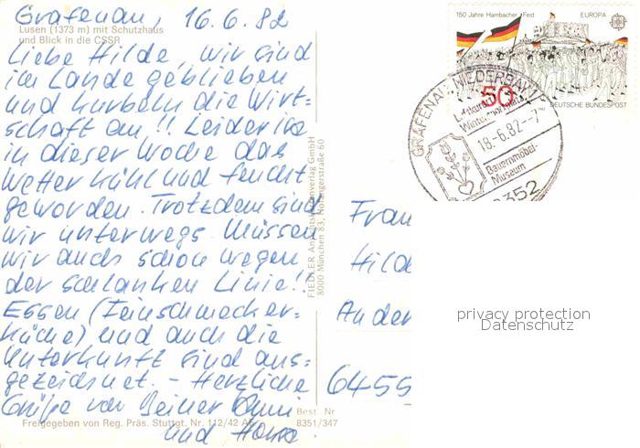 72772597 alte Postkarte Lusen Bayerischer Wald Schutzhaus Blick nach Tschechien postalisch gelaufen Erhaltung siehe scans [AndreD76] KatCode: 11110009276115