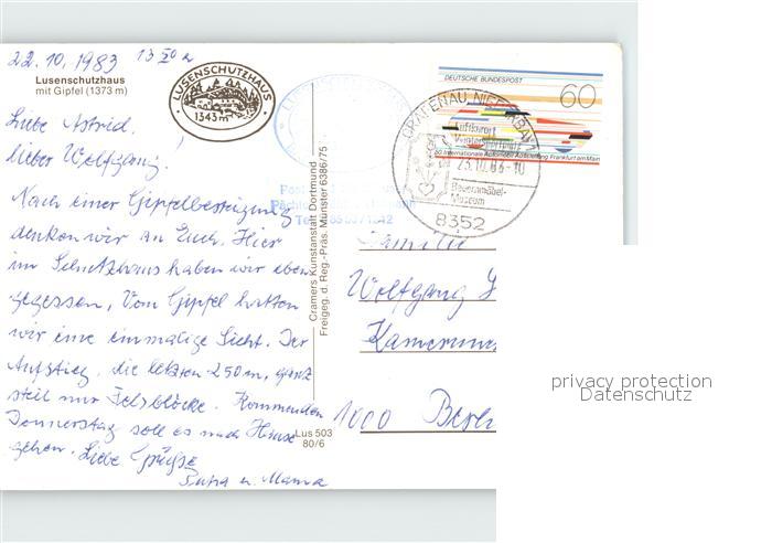 72330348 alte Postkarte Lusenschutzhaus Fliegeraufnahme postalisch gelaufen Erhaltung siehe scans KatCode: 11110009272146