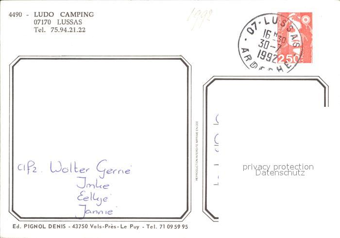 12034442 carte postale Lussas Ludo Camping postalisch gelaufen Erhaltung siehe scans KatCode: 11170007107145