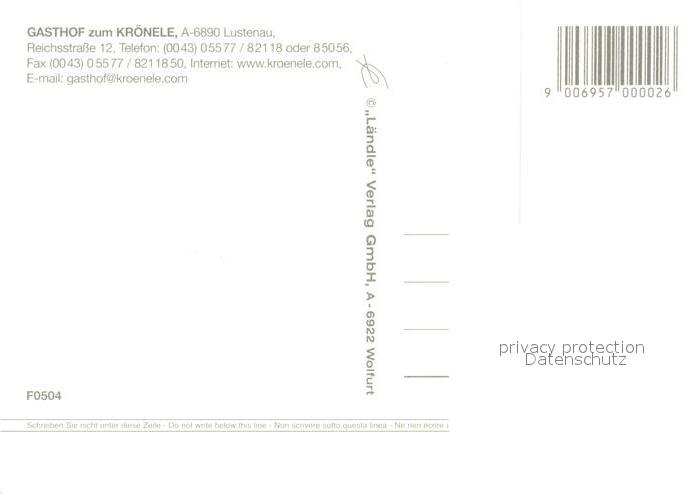 13221110 Lustenau Gasthaus zum Kroenele postalisch nicht gelaufen Erhaltung siehe scans [LiesaD40] KatCode: 11390342080303