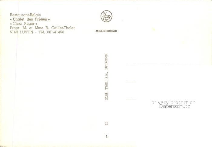 72349490 Lustin Namur Restaurant-Relais Chalet des Frenes postalisch nicht gelaufen Erhaltung siehe scans KatCode: 11070092010509