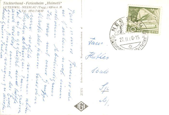 13891679 alte Postkarte Lutenwil Toechterbund Ferienheim Heimetli Zeichnung postalisch gelaufen Erhaltung siehe scans [FriedD77] KatCode: 11470190585828
