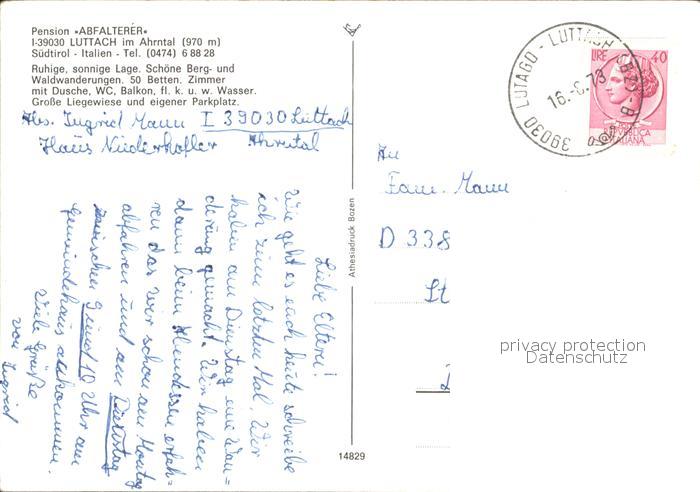 old postcard Luttach Ahrntal Suedtirol Pension Abfalterer postalisch gelaufen Erhaltung siehe scans