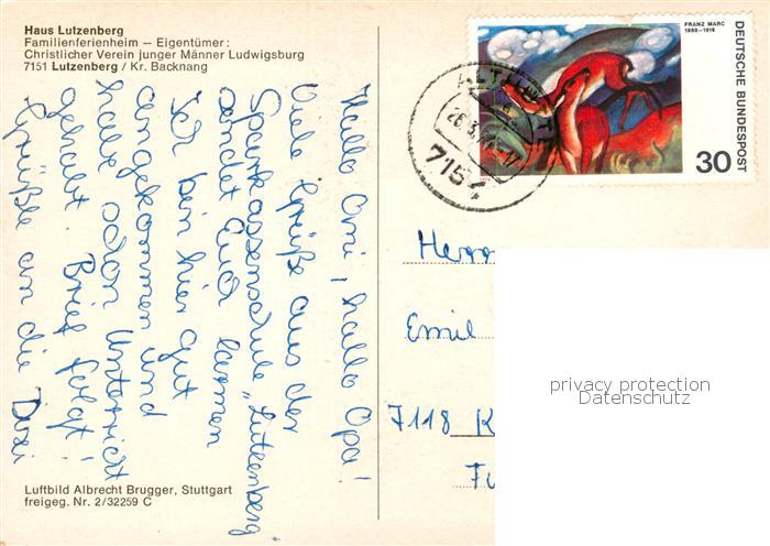 73835757 alte Postkarte Lutzenberg Althuette Haus Lutzenberg Familienferienheim postalisch gelaufen Fliegeraufnahme Erhaltung siehe scans [WerneD78] KatCode: 11110008119004
