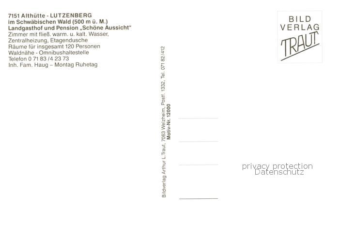 73854761 Lutzenberg Althuette Landgasthof Pension Schoene Aussicht postalisch nicht gelaufen Erhaltung siehe scans [WerneD78] KatCode: 11110008119004