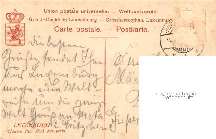 alte Postkarte LUXEMBOURG Luxemburg Clausen vu du Bock postalisch gelaufen Erhaltung siehe scans [LiesaD40]