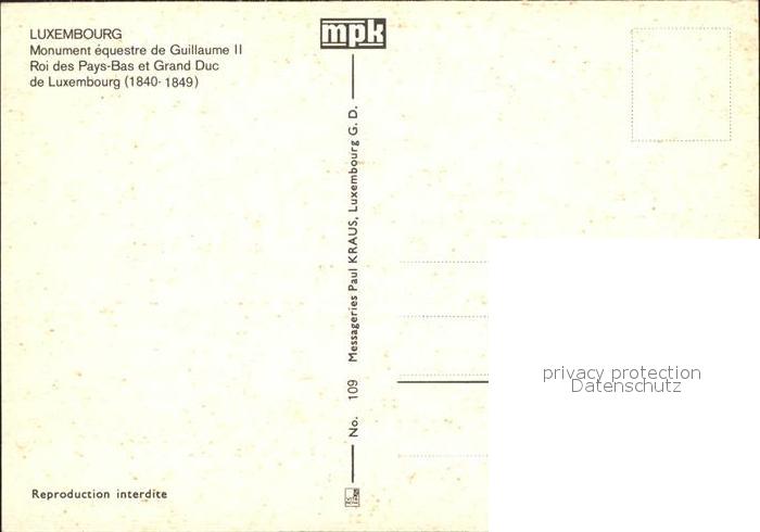 LUXEMBOURG Luxemburg Monument equestre Guillame II postalisch nicht gelaufen Erhaltung siehe scans
