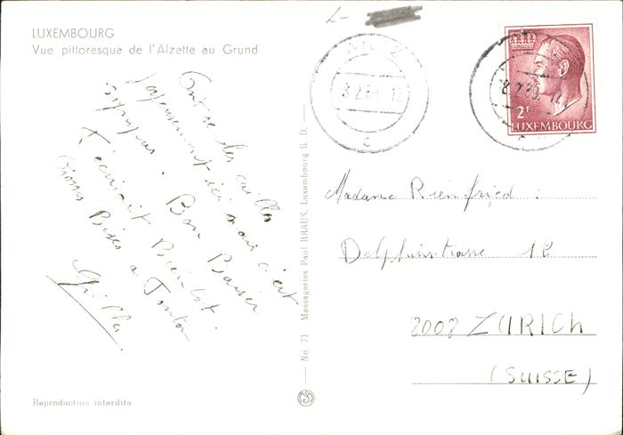 alte Postkarte LUXEMBOURG Luxemburg Vue pittoresque de l’Alzette au Grund postalisch gelaufen Erhaltung siehe scans