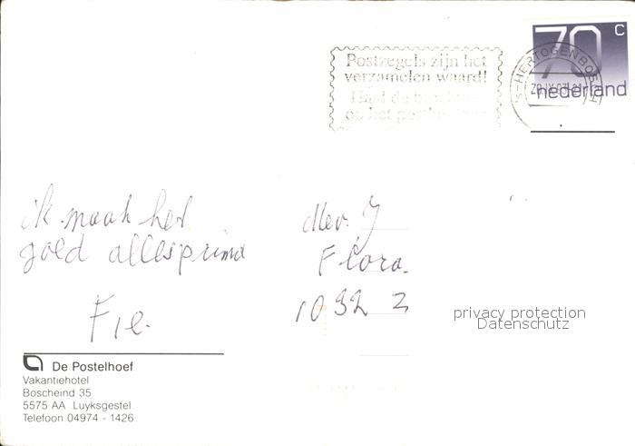 old postcard Luyksgestel Vakantiehotel De Postelhoef Restaurant Swimming Pool Waldpartie Reh postalisch gelaufen Erhaltung siehe scans