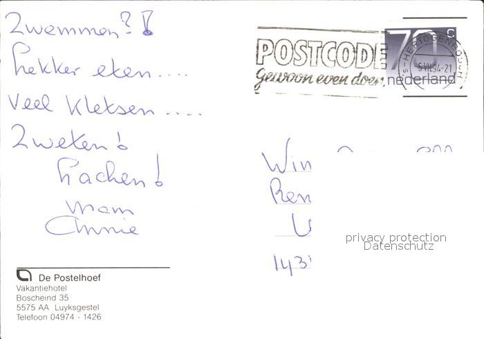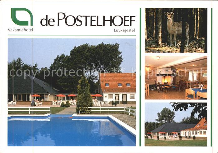 old postcard Luyksgestel Vakantiehotel de Postelhoef Swimming Pool Kaminzimmer Reh postalisch gelaufen Erhaltung siehe scans