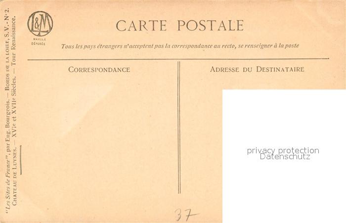 13555758 Luynes Indre-et-Loire Châtaeu Les Sites de France par Eug. Bourgeois Dessin Kuenstlerkarte Serie V No. 2 postalisch nicht gelaufen Erhaltung siehe scans [FriedD77] KatCode: 11170037237261