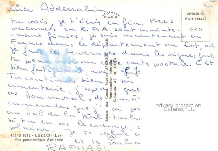13789033 Luzech Vue panoramique aérienne postalisch nicht gelaufen Erhaltung siehe scans [FriedD77] Frie Katcode 11170046146182