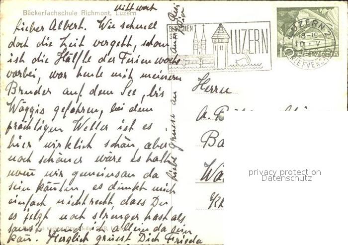 11648425 alte Postkarte Luzern LU Baeckerfachschule Richmont postalisch gelaufen Erhaltung siehe scans KatCode: 11470120390902