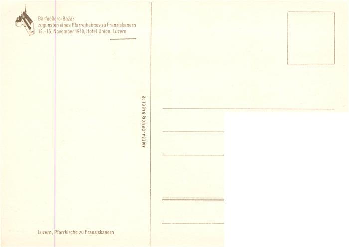 13899696 Luzern LU Barfuesser Bazar zugunsten eines Pfarreiheimes zu Franziskanern postalisch nicht gelaufen Erhaltung siehe scans [WerneD78] KatCode: 11470120390902