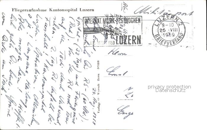 12467849 alte Postkarte Luzern LU Kantonsspital Luftaufnahme postalisch gelaufen Erhaltung siehe scans KatCode: 11470120390902