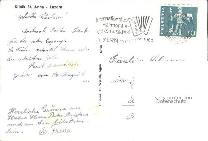 11837246 alte Postkarte Luzern LU Klinik St. Anna postalisch gelaufen Erhaltung siehe scans KatCode: 11470120390902