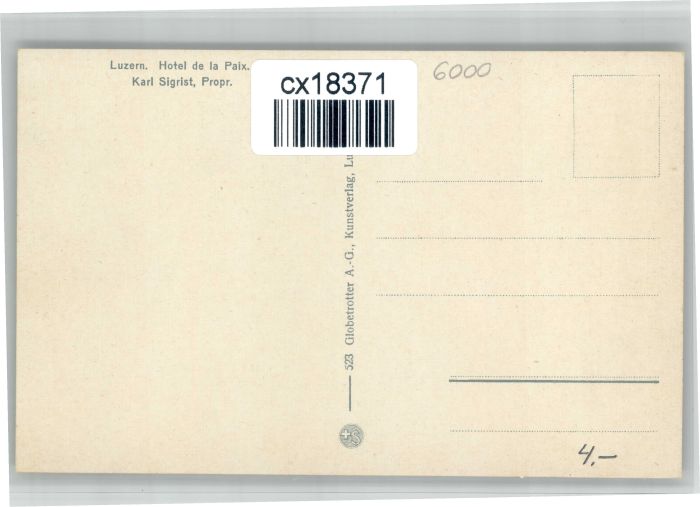 10723492 Luzern LU Luzern Hotel de la Paix postalisch nicht gelaufen KatCode: 11470120390902