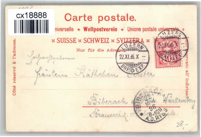 10723508 alte Postkarte Luzern LU Luzern Restaurant Rosengarten postalisch gelaufen KatCode: 11470120390902