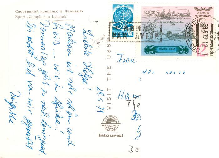 old postcard Luzhniki Stadion Moskau Moscou RU Sports Complex postalisch gelaufen Fliegeraufnahme Erhaltung siehe scans [FriedD77]