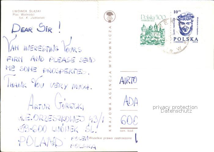 old postcard Lwowek Slaski Loewenberg Schlesien Plac Wolnosci postalisch gelaufen Erhaltung siehe scans [NatalD47]
