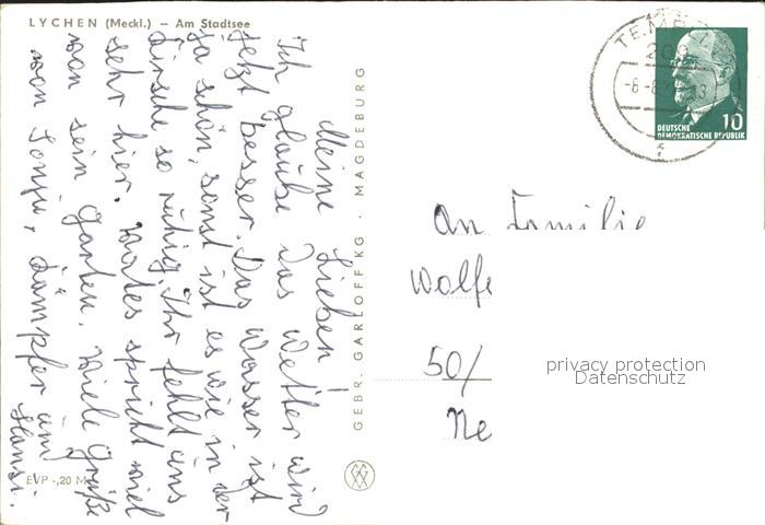 72181470 alte Postkarte Lychen am Stadtsee postalisch gelaufen Erhaltung siehe scans KatCode: 11110012073384