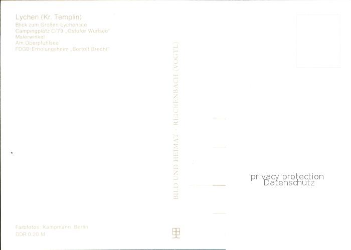 72548452 Lychen Camping Wurlsee Oberpfuhlsee Ferienheim Bertold Brecht postalisch nicht gelaufen Erhaltung siehe scans [LiesaD40 kv019box] KatCode: 11110012073384