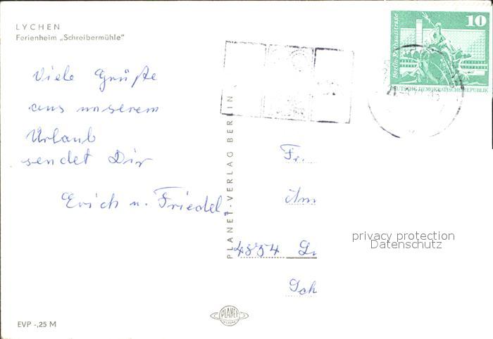 72069746 alte Postkarte Lychen Ferienheim Schreibermuehle postalisch gelaufen Erhaltung siehe scans KatCode: 11110012073384