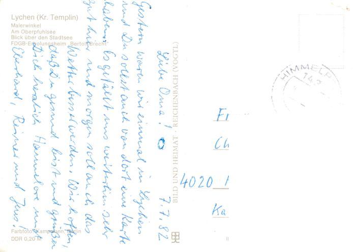73876246 Lychen Malerwinkel Am Oberpfuhlsee Blick ueber den Stadtsee FDGB Erholungsheim Bertolt Brecht postalisch nicht gelaufen Erhaltung siehe scans [WerneD78] KatCode: 11110012073384