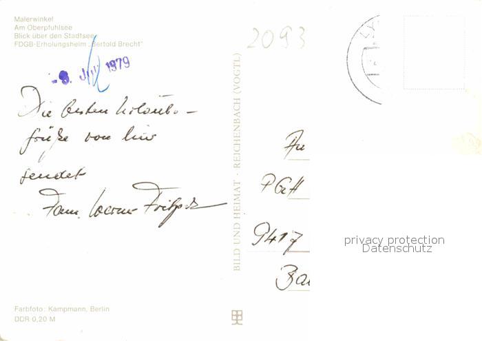 72750680 alte Postkarte Lychen Malerwinkel Oberpfuhlsee FDGB Erholungsheim Bertold Brecht postalisch gelaufen Erhaltung siehe scans [KathaD81] KatCode: 11110012073384