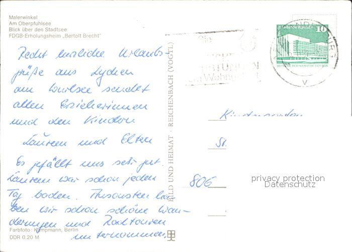 72374291 alte Postkarte Lychen Malerwinkel Oberpfuhlsee Stadtsee FDGB Erholungsheim Bertolt Brecht postalisch gelaufen Erhaltung siehe scans KatCode: 11110012073384