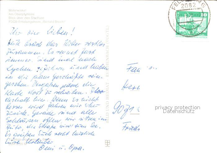 72056947 alte Postkarte Lychen Oberpfuhlsee Stadtsee FDGB Erholungsheim Bertold Brecht postalisch gelaufen Erhaltung siehe scans KatCode: 11110012073384