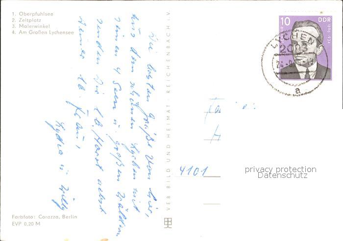 72120629 alte Postkarte Lychen Oberphulsee Camping Malerwinkel See postalisch gelaufen Erhaltung siehe scans KatCode: 11110012073384