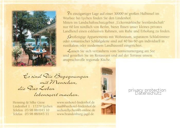 73656632 Lychen Seehotel Lindenhof im Wurlsee Fliegeraufnahme postalisch nicht gelaufen Werbekarte (keine Postkarte) Erhaltung siehe scans [WerneD78] KatCode: 11110012073384