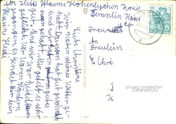 72366830 alte Postkarte Lychen Stadtblick Muehlenbach St Johanneskirche Stausee postalisch gelaufen Erhaltung siehe scans KatCode: 11110012073384