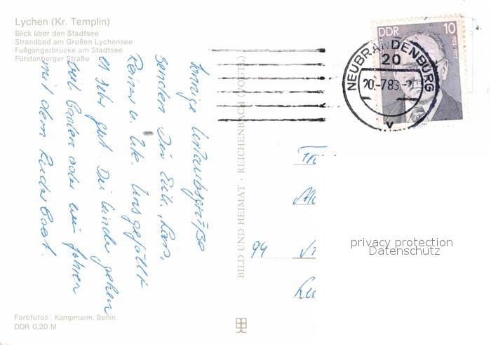 72616329 alte Postkarte Lychen Stadtsee Strandbad Grosser Lychensee Fussgaengerbruecke Fuerstenberger Strasse postalisch gelaufen Erhaltung siehe scans [FriedD77] KatCode: 11110012073384