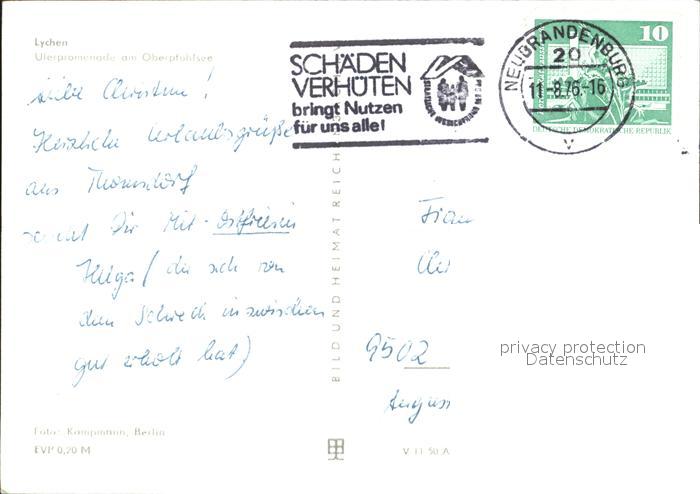 72367641 alte Postkarte Lychen Uferpromenade Oberpfuhlsee postalisch gelaufen Erhaltung siehe scans KatCode: 11110012073384