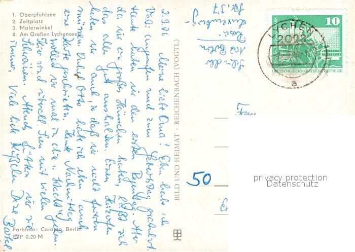 73063371 alte Postkarte Lychen Zeltplatz Oberpfuhlsee Malerwinkel Grosser Lychensee postalisch gelaufen Erhaltung siehe scans [KathaD81] KatCode: 11110012073384