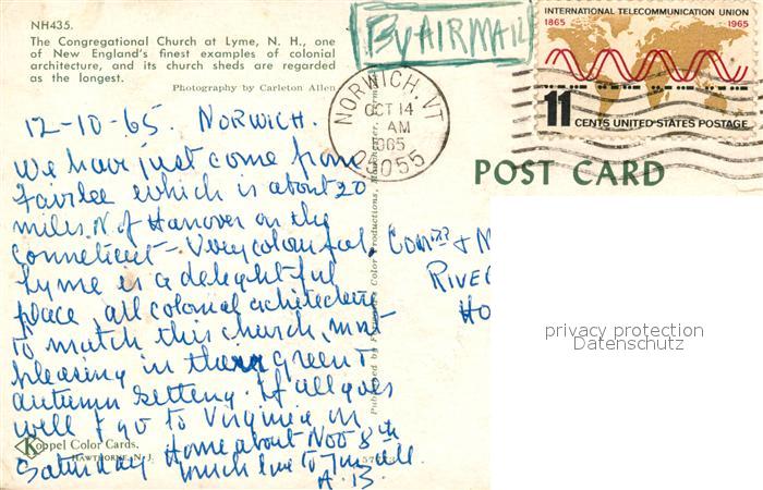 73130347 old postcard Lyme Congregational Church postalisch gelaufen Erhaltung siehe scans [NatalD47] KatCode: 14140310000000