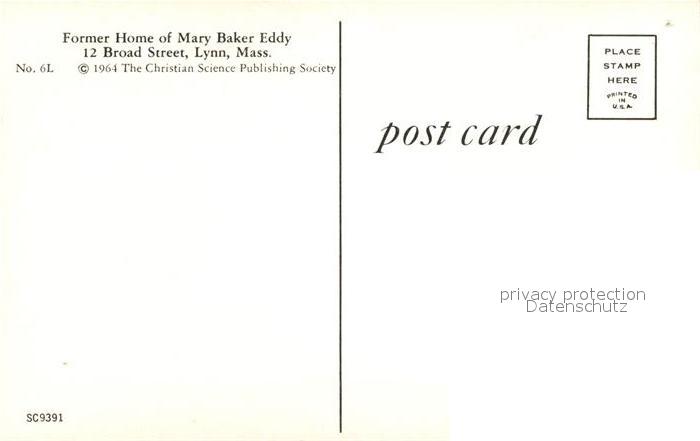 73277732 Lynn Massachusetts Former Home of Mary Baker Eddy postalisch nicht gelaufen Erhaltung siehe scans [LiesaD40] KatCode: 14140230000000