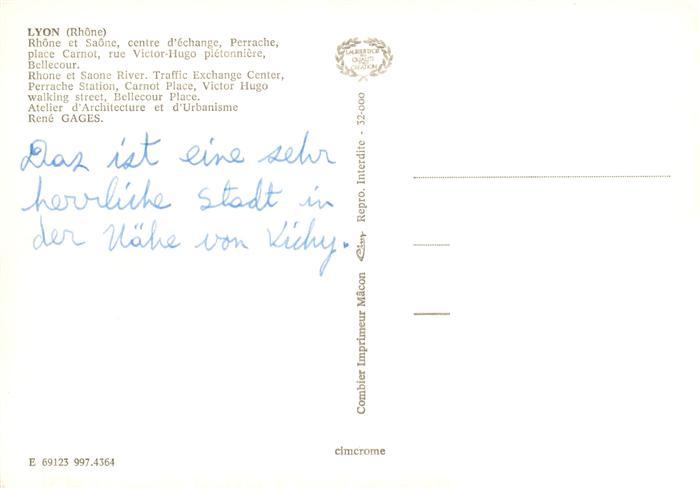 13882750 Lyon 69 Rhone Centre d’echange Perrache place Carnot rue Victor Hugo pietonniere Bellecour Vue aerienne postalisch nicht gelaufen Erhaltung siehe scans [FriedD77] Frie Katcode 11170069169123