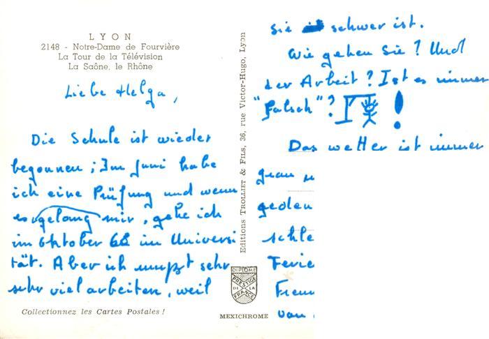 13882661 Lyon 69 Rhone Notre Dame de Fourviere La Tour de la Television La Saone le Rhone Vue aerienne postalisch nicht gelaufen Erhaltung siehe scans [WerneD78] Wern Katcode 11170069169123