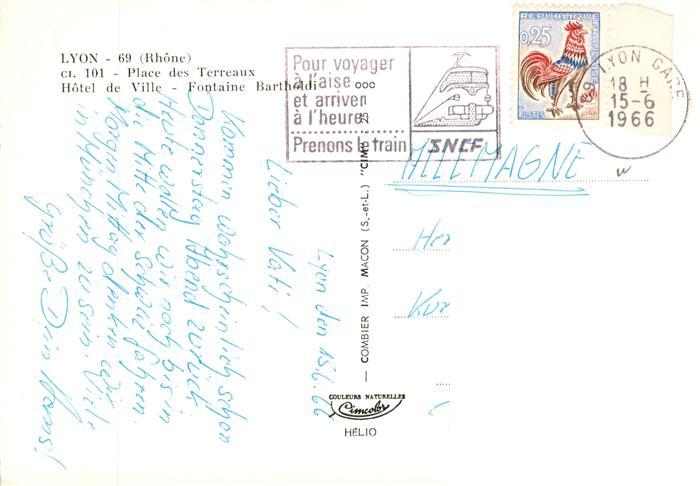 13886515 Lyon 69 Rhone Place des Terreaux Hotel de Ville Fontaine Bartholdi postalisch gelaufen Erhaltung siehe scans [WerneD78] carte postale Wern Katcode 11170069169123
