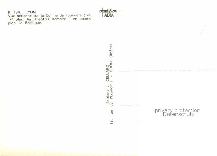 12709495 Lyon France Colline de Fourviere Theatre Romains Basilique vue aerienne postalisch nicht gelaufen Erhaltung siehe scans [FriedD77] KatCode: 11170069169123