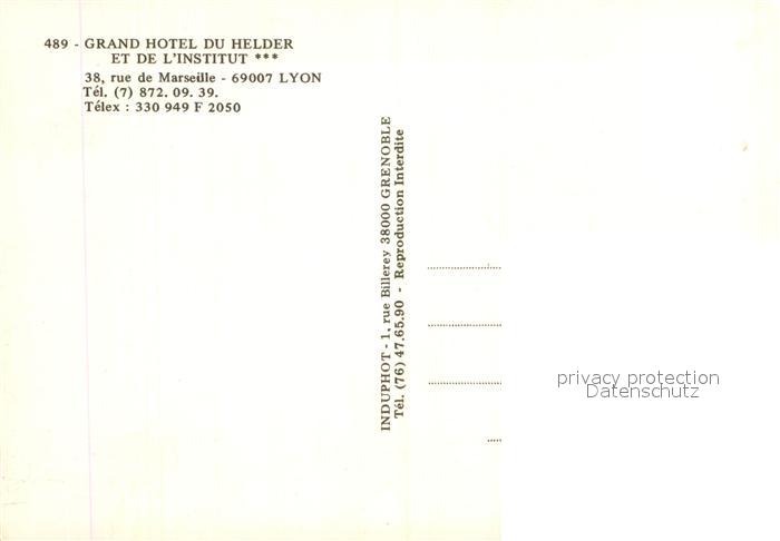 13011960 Lyon France Grand Hotel du Helder et de Institut KatCode 11170069169123